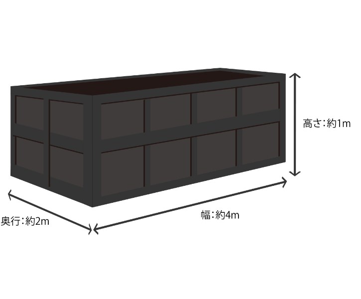 横幅:約4m、高さ:約1m、奥行:約2mです。