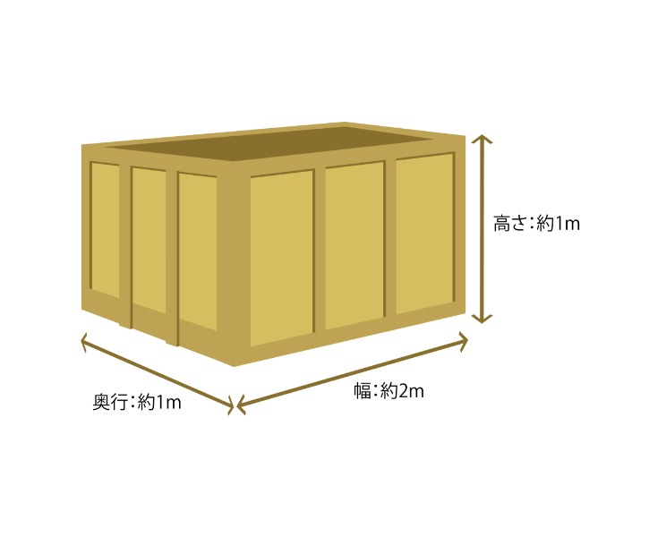 横幅:約2m、高さ:約1m、奥行:約1mです。