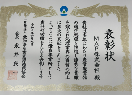 弊社MAPが「優良事業所」として表彰をいただきました。